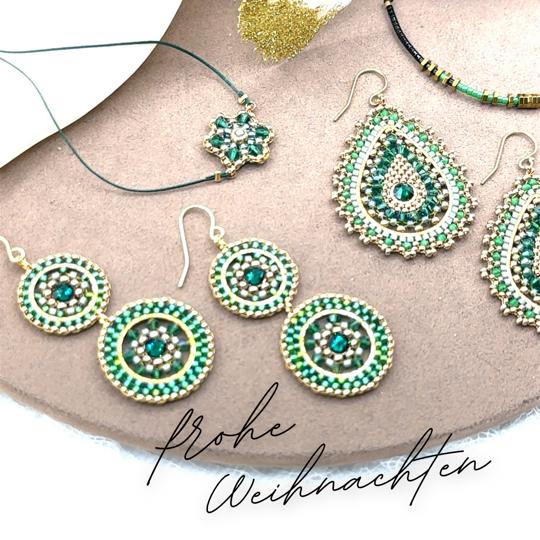 Perlen: Ich kombiniere Jap. Myjuki-Perlen, Österreichische Swarovski Kristalle, Tschechische facettierte Glasperlen, und verschiedenste Halbedelsteine.